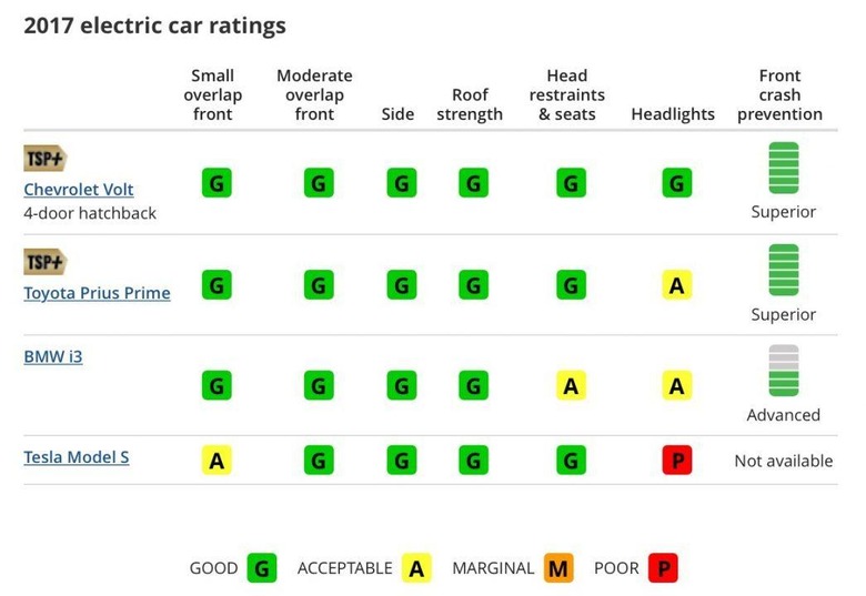 Two plug-in hybrids tested at the same time, meanwhile, did better in the ratings. The Chevrolet Volt and Toyota Prius Prime both get the 2017 TOP SAFETY PICK+ award, though buyers are advised to tick the crash prevention options and high-beam assist on the Volt if they want the best safety. Toyota's hybrid does well with all its standard safety systems. The IIHS says it plans to test the Chevrolet Bolt EV, Chevy's all-electric hatchback, once vehicles are more widely available later in 2017.