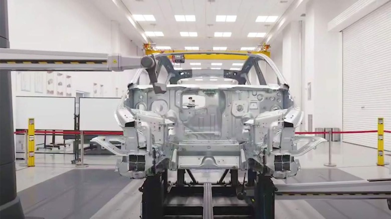 Other segments of the video show robotic parts stamping machines that appear to be hammering out door skins. The factory is highly automated, with more robots than people from what we see in the video. There's certainly the possibility that human workers were cleared out of the factory to some extent before filming began.