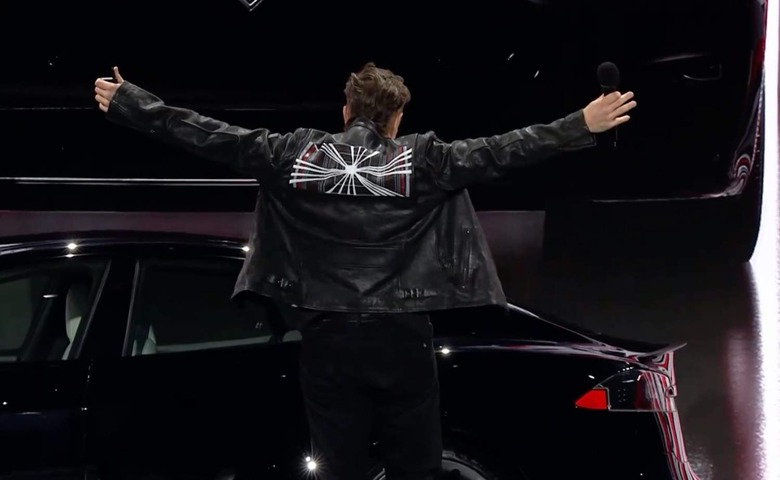 Musk also took the opportunity to show off a slick new "Plaid Mode" leather jacket. Sadly that doesn't appear to be available in Tesla's apparel store, though you can get a matching t-shirt.