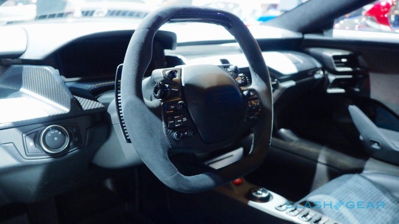 Frankly, it's almost a surprise to see regular Ford controls show up among the bespoke, machined parts. The GT is probably the most expensive place you'll find the Blue Oval's rotary headlamp switch, for instance, not to mention its buttons for the door locks and electric windows. We're saved from finding out whether Ford would have allowed Fiesta stalks onto the GT's column by the fact that the indicator controls are now buttons on the wheel, keeping them out of the way of the paddles.