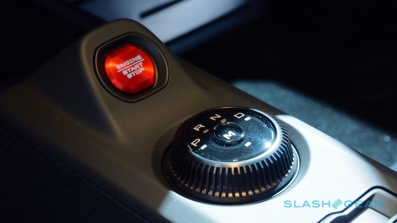 The same holds true in the cabin, where it's modern-day racing that inspires the car's interior. Most of the important controls are found on the steering wheel, elevated to especially tactile levels by virtue of their clean engineering. The drive mode dial resembles a metal cog that could've been snagged from the engine compartment; the paddle-shifters are perforated arcs like the handles of tactical knives.