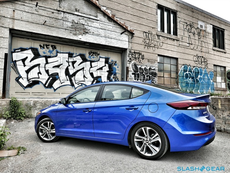 There's a lot to like about what's inside the 2017 Hyundai Elantra past the generous amount of passenger room. Two LCD touchscreen infotainment systems measuring seven and eight inches, respectively, are on the docket, and Hyundai has also added a fair amount of active safety equipment to the mix, including blind spot monitoring, lane departure warning (and lane keeping assistance), forward collision warning, and an automatic braking system.
