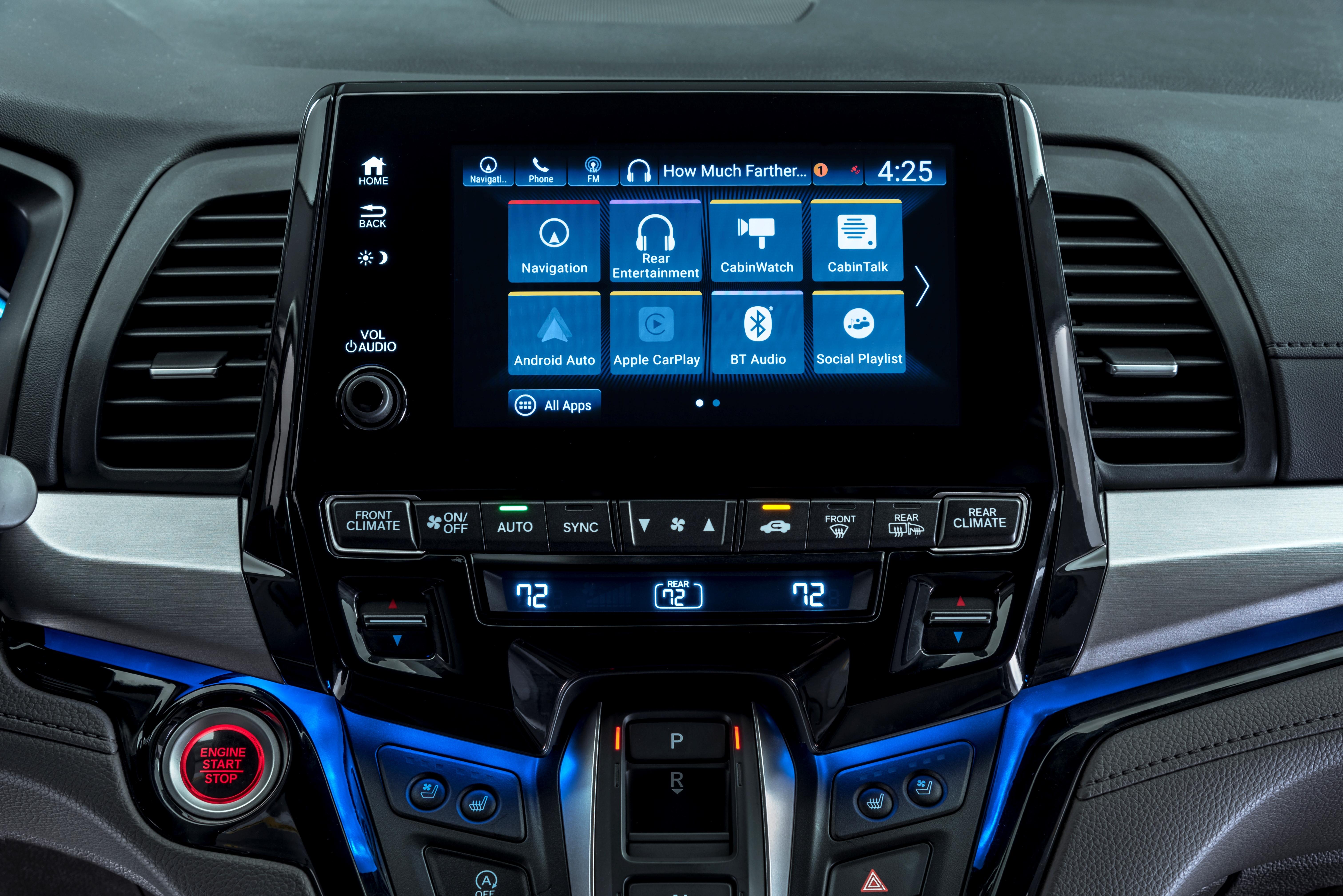 Honda's CabinControl app allows for remote control over the rear entertainment system and rear HVAC, as well as destinations to be remotely programmed to the in-car navigation system. It also has a Social Playlist, which allows up to eight different smartphone sources to share their music selections. Honda says you should be able to hear that music better, too, thanks to triple door seals, optional acoustic glass in the front and sides, and more sound-deadening material around the car, in addition to its standard-fit Active Sound Control system.