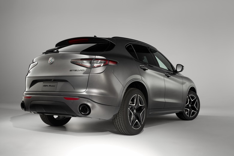 On the Stelvio SUV, there's now a new body-color kit on Sport trim and above. That adds painted wheel flares, lower rocker panels, and rear fascia. A Dark Miron appearance kit is also available on the SUV's Sport trim, while the Stelvio Quadrifoglio can be had with a new exterior carbon fiber package.