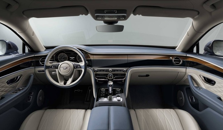 Where that torque goes depends on the current Drive Dynamics Mode. In the Comfort and Bentley settings, up to 354 lb-ft can be pushed to the front; in Sport, that's limited to around 207 lb-ft. Bentley says it does that leave the Flying Spur feeling more agile.