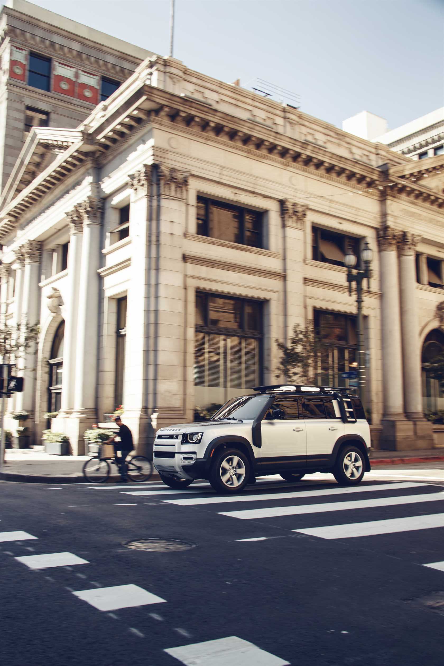 "The new Defender is an excellent example of reconciling design and engineering," added McGovern. Both the front and rear wheels are stretched further towards each side to give the new Defender extremely short overhangs. And while that's a famous strategy in coupes and convertibles for injecting a dose of sportiness, it also means better interior room, more efficient cargo space, and unparalleled all-terrain capabilities. In fact, the Defender 110's impressive approach, break-over, and departure angles allow it to conquer virtually any type of terrain. If the wheels can dig in, the new Defender can probably go over it.