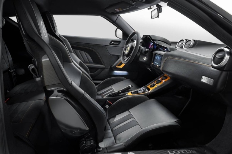At its core, the 2020 Evora GT follows Lotus' own automotive obsession of reducing weight to maximize performance. Check off all the lightweighting options – including a $10,000 Carbon Pack which swaps the food, tailgate, rear bumper, front access panel, and rear diffuser surround for the lighter material – together with ultra-trim wheels, and the coupe tips the scales at a mere 3,104 pounds. That's 71 pounds less than the Evora 400 it replaces.