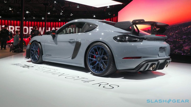 With shorter gearing than the regular GT4, 0-60 mph arrives in 3.2 seconds. Top speed is 196 mph, achieved in seventh gear. However it's how the 718 Cayman GT4 RS looks that could turn more heads.