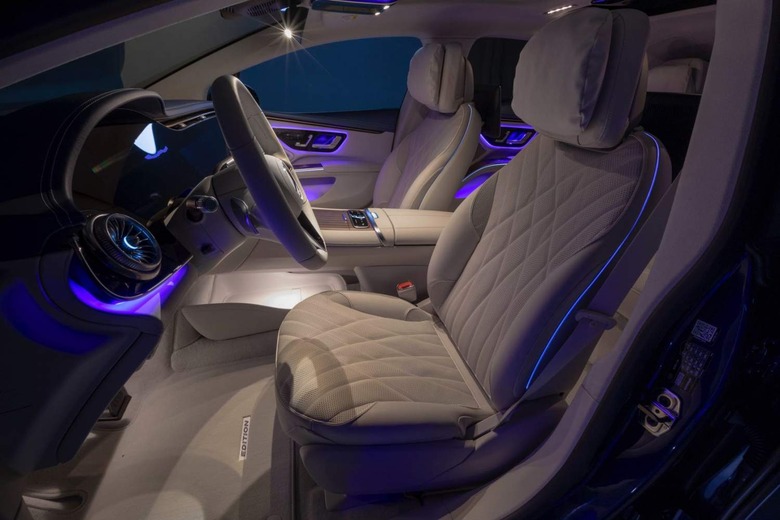 When it's time to wake up, there's another soundscape designed to be more activating, paired with a fragrance. The seats will give a subtle massage and their ventilation will turn on as well. Finally, Mercedes says, the seat moves back into its usual position and the sunshade across the panoramic glass roof opens. Just in time to make the most of all those electrons.