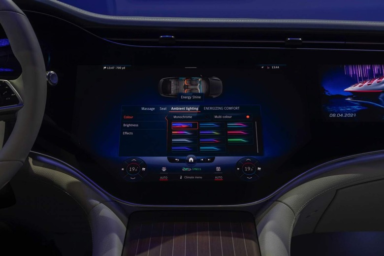 Mercedes launched its Energizing Comfort system back on the 2018 S-Class, blending relaxing soundtracks, ambient lighting, massage seats, and even fragrances for themed soothing programs like "Warmth" and "Vitality." The EQS adds to that with three new Energizing Nature programs.