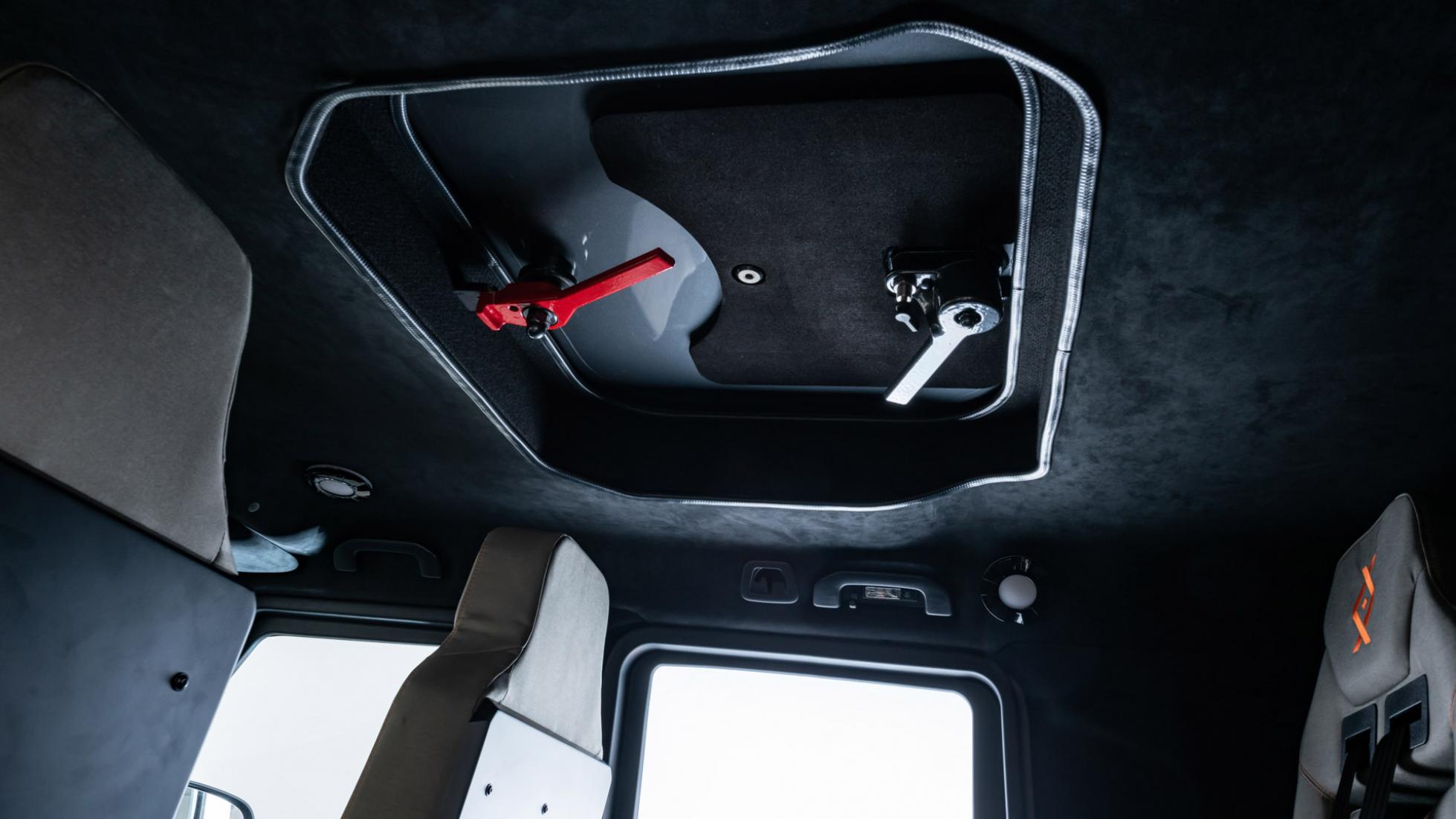 Brabus is offering three different models of the Invicto G-Class. The Invicto Luxury receives a Brabus Widestar body kit and a premium interior. On the other hand, the Invicto Pure looks pretty much like a regular G-Class albeit with different wheels. But when the going gets tough, you'll need the Invicto Mission with a military-grade navigation system, a roof rack with a powerful LED light bar, blinker lights in the windscreen and front grille, and a fortified escape hatch in the roof.