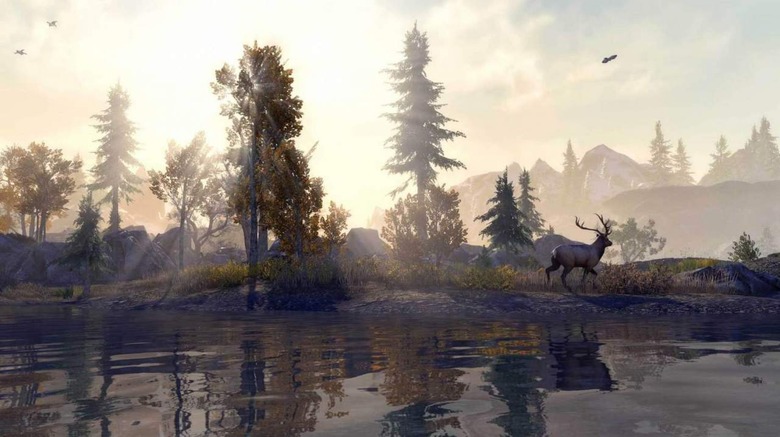 Bethesda also says that draw distance has been doubled in ESO: Console Advanced, so expect some more scenic vistas and Bob Ross-like backgrounds as you explore Tamriel. We can also expect to see high resolution textures and improved anti-aliasing that will improve the jagged edges you'd typically see on grass, plants, and buildings.