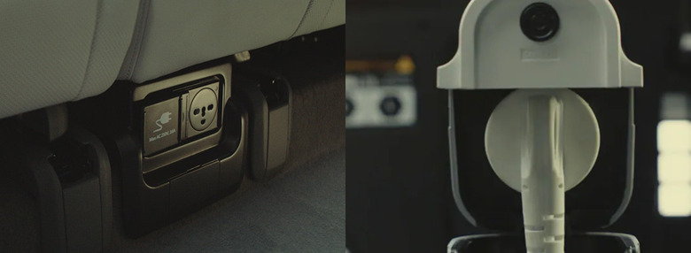 There are two power outlets in the Ioniq 5. One is in the rear, under the second-row seats; it's active whenever the EV is switched on. A second is located alongside the charging port on the outside, and it's capable of supply power even if the car is off. A converter, Hyundai says, can be used for running high-power electronic equipment off that port.
