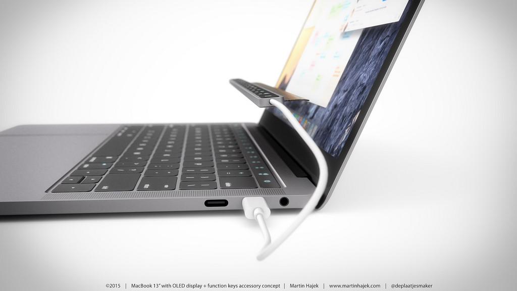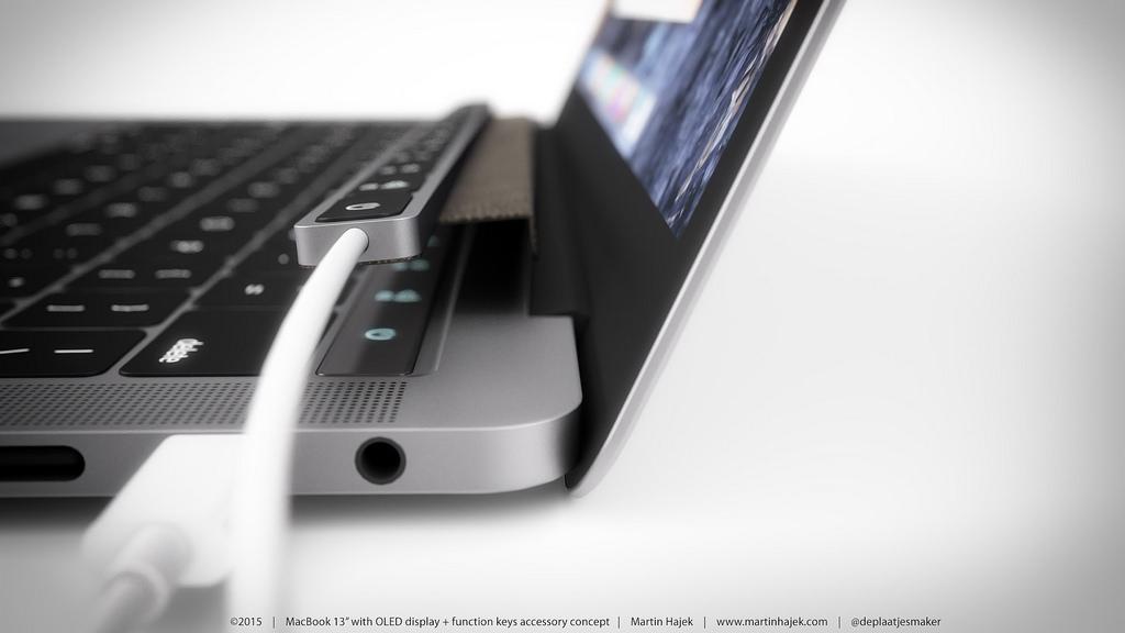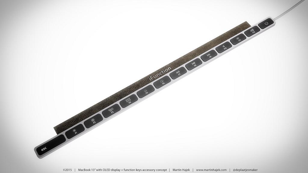 The accessory you see here is necessitated by another concept created by Hajek earlier this month. Made for the "new MacBook", made by Hajek, this physical top row of keys sits on top of the OLED touchscreen otherwise giving the user next-gen functionality.