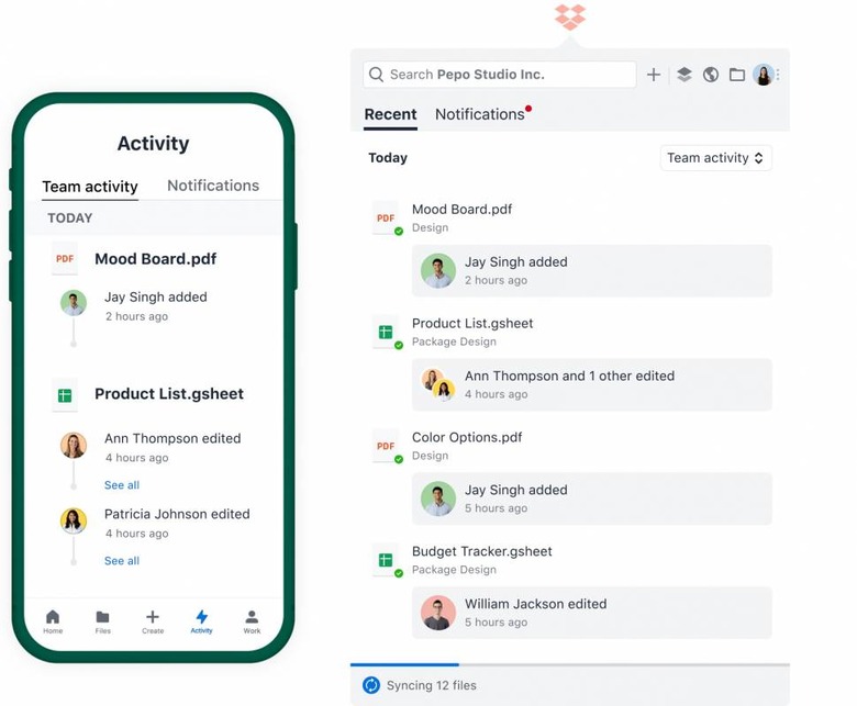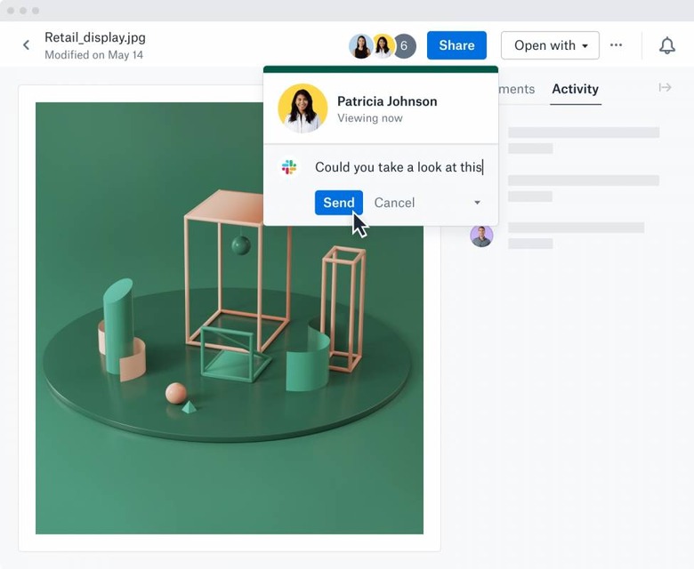 Finally, there's sharing. Shared folders can now act more like workspaces, Dropbox says, with things like richer descriptions, mentions, and the ability to create to-dos and pinned messages. A new activity feed shows how the files are being interacted with, including if they're being shared in Slack or elsewhere. Comments are supported, too, for logging feedback.