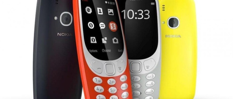 Update: We now have some more specs, and there's good news and bad. The new 3310 uses a 2.4-inch QVGA color display, and has a mere 16MB of internal storage; you'll want to slot in a microSD card (but only cards up to 32GB are supported). There's an FM radio and a 3.5mm headphone jack, plus a microUSB for recharging. The camera is 2-megapixels, with an LED flash.