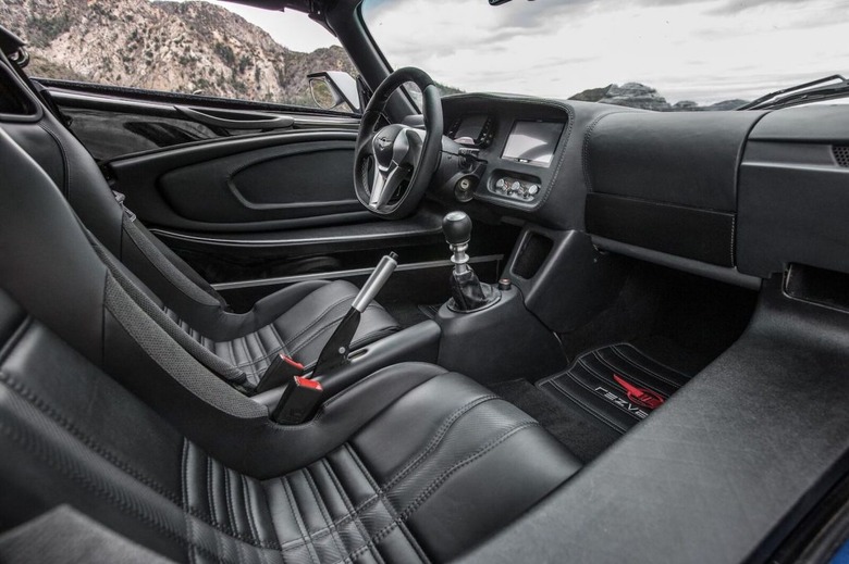 It's in no small part down to the light curb weight of the targa-top car. Rezvani starts out with a "Lotus-derived" aluminum monocoque, around which it builds a completely carbon-fiber body. With the help of some lightweight 18- or 19-inch forged alloy wheels, the Beast Alpha tips the scales at a mere 1,950 pounds.