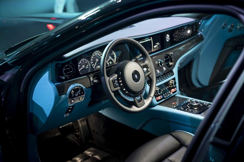 Lashings of leather cover the rest of the surfaces, and while Black Badge cars typically feature a darker exterior color scheme, Rolls-Royce says its clients often go for something brighter and more striking inside. The technology remains surreptitious, with physical controls alongside twin displays for the infotainment system and driver instrumentation.