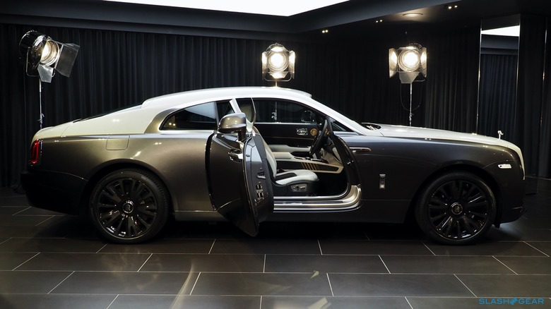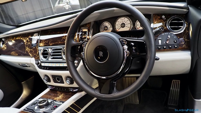 Meanwhile, the dashboard and console are designed to represent a modern-day abstract interpretation of what Alcock and Brown saw as the aircraft flew clear of the fog. It's beautiful to behold and speaks highly of Rolls-Royce's dedication to making the most sought-after bespoke car in the world. Of course, wood is at the center of it all, and Rolls-Royce chose Smoked Eucalyptus planks for this occasion. Each piece is vacuum metalized in gold with silver and copper inlays. You can see the rich detail and meticulous craftsmanship that went into each piece. It also connects the starlight headliner with the rest of the vehicle for a genuinely awe-inspiring driving experience.