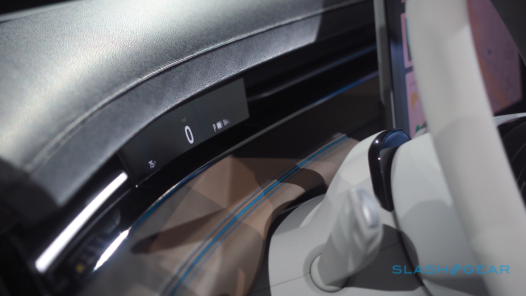 Door handles are done away with in favor of touch pads, again with reducing wind drag in mind. Walk up to the ID. SPACE VIZZION and the pads light up; touch one, and it pulses, vibrates, and the door opens. Indeed graphical lighting is a big theme in the concept, with the IQ.LIGHT LED headlamps joined by an illuminated VW logo and crossbar, along with honeycomb-style LED daytime running lights. They also act as X-shaped turn signals.