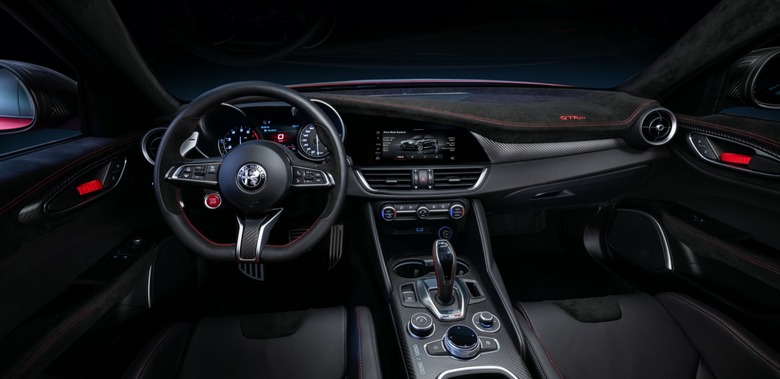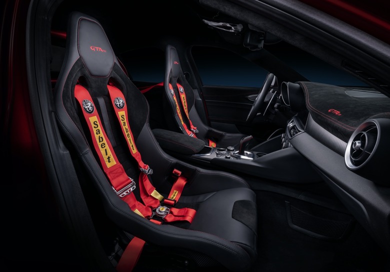 At the same time, the engine got a tune-up. The 2.9-liter V6 bi-turbo is normally good for 510 hp: Alfa Romeo's engineers squeezed 540 hp out of if for the GTA-badged cars. They threw in a titanium Akrapovi exhaust system too, to make sure it all sounds the part.