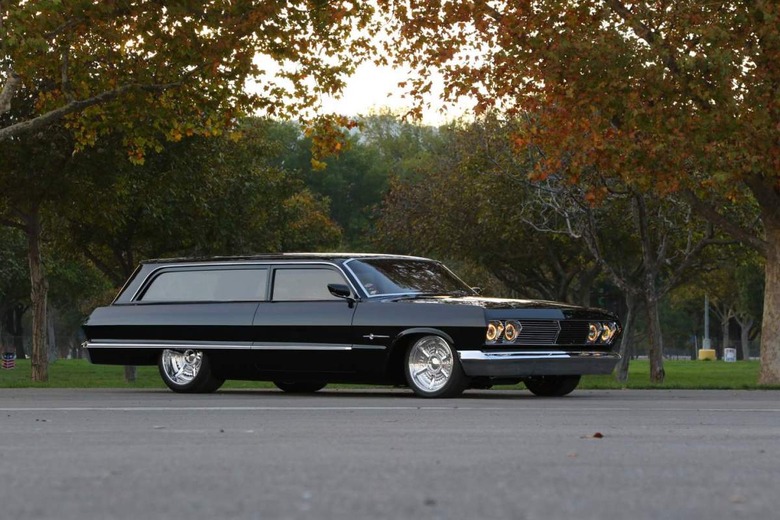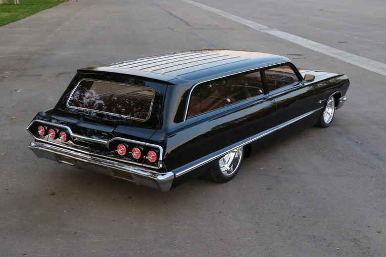 Custom-built by the Ranweiler family at Show Cars Automotive in Minnesota, this superb Chevy wagon (affectionately named "Impressive" by its dedicated owners) took nine years to conceive, and it shows. It has a custom body that started life as a four-door wagon. Chevy didn't offer a two-door wagon body style in 1963, so the Ranweiler team chopped the top, raked the windshield, and gave it a custom rear end with bespoke B and C-pillars.