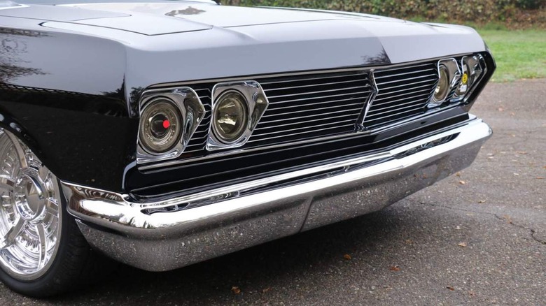 Meanwhile, the entire front end is custom-built for a seamless vibe. Other unique exterior touches include a one-off front grille, updated bumpers, and a reverse-opening pancake hood. Rounding up the exterior are custom-carved EVOD 18x8-inch front and 20x12-inch rear wheels.