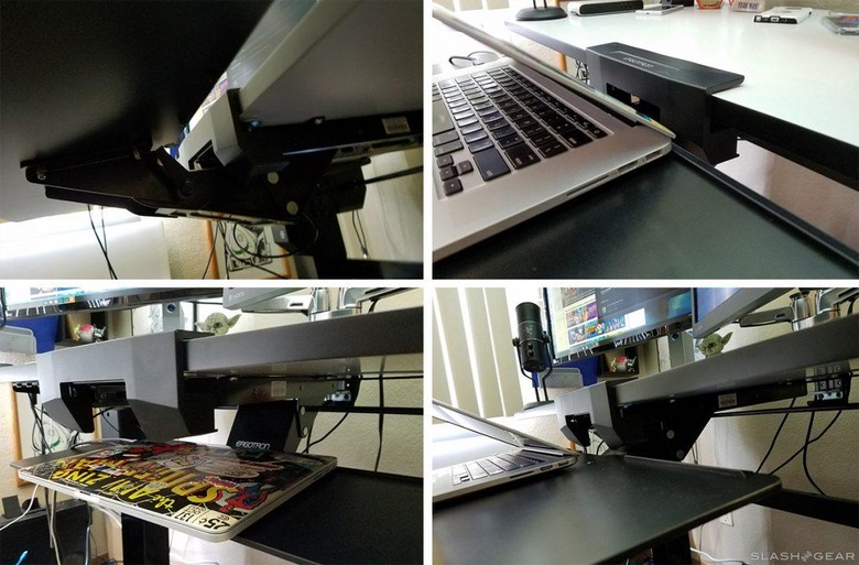 Meanwhile – while I could have considered using the desk as the surface where my notebook would go, I'm using the Underdesk Keyboard Arm, which places the notebook down in the most natural position for my arms to access.