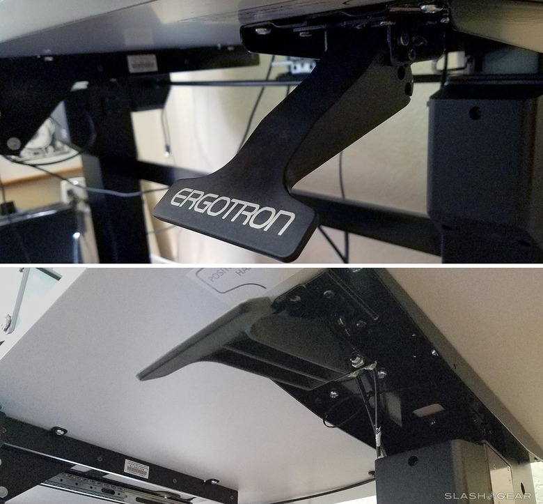 Pulling this lever up makes the entire top of the table rise with relative ease – just so long as it's not overloaded with the next device I'm about to tell you about.