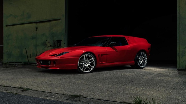This modern Ferrari Breadvan started life as a Ferrari 550 Maranello. After many sketches and building a full-size clay model, the Breadvan Hommage gains a new front bumper, a domed hood, and fresh air vents. The body panels were hand-beaten to perfection by coachbuilder Bas van Roomen, and only the windshield was carried over from the donor vehicle.