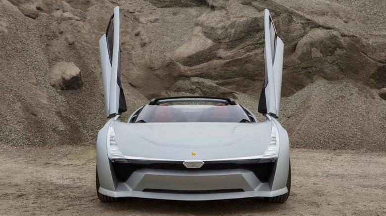 However, GFG Style also has the 2030 Desert Raid if what you want is a hyper-electric SUV rather than a roofless sports car. The Desert Raid is riding on the same aluminum spaceframe as the Bandini Dora and has the same two-seat configuration. But unlike the Dora, Desert Raid offers better ground clearance, various on and off-road driving modes, and an innovative flip-opening roof panel for both the driver and front passenger.