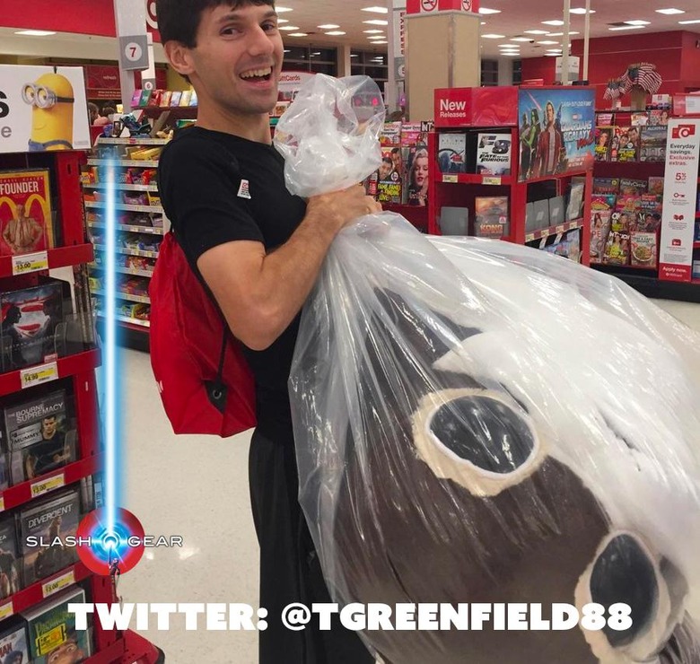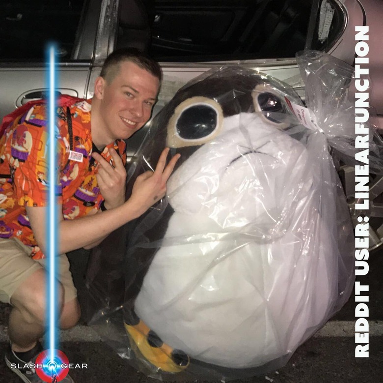 The hulking beast shown above and below is several times the size of its course material. These creatures are Porgs, and they were given away on Force Friday at select Target locations throughout the United States. Folks needed to be there for the midnight opening to see this stuffed animal, and only one lucky customer per Target walked away with this extravagant toy for themselves.
