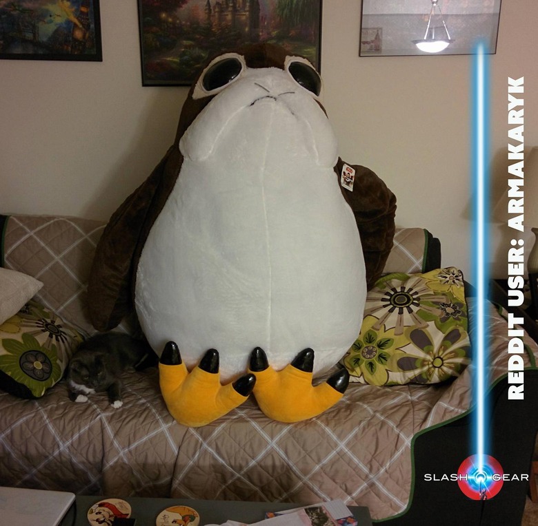 NOTE: The images above come from the Twitter account @manraysky. K. Hidalporg gave us the true scale of this monster via the in-aisle photo. Below you'll also find a photo of a Porg on a couch with a cat for scale.