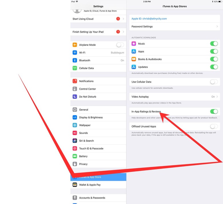 The setting referenced above goes further to end the practice of annoying pop-ups begging for reviews in apps. This setting is a switch relatively hidden – if you're not the sort of person to go fiddling with settings on an average afternoon. The page you'll be looking for is in Settings under iTunes & App Store.