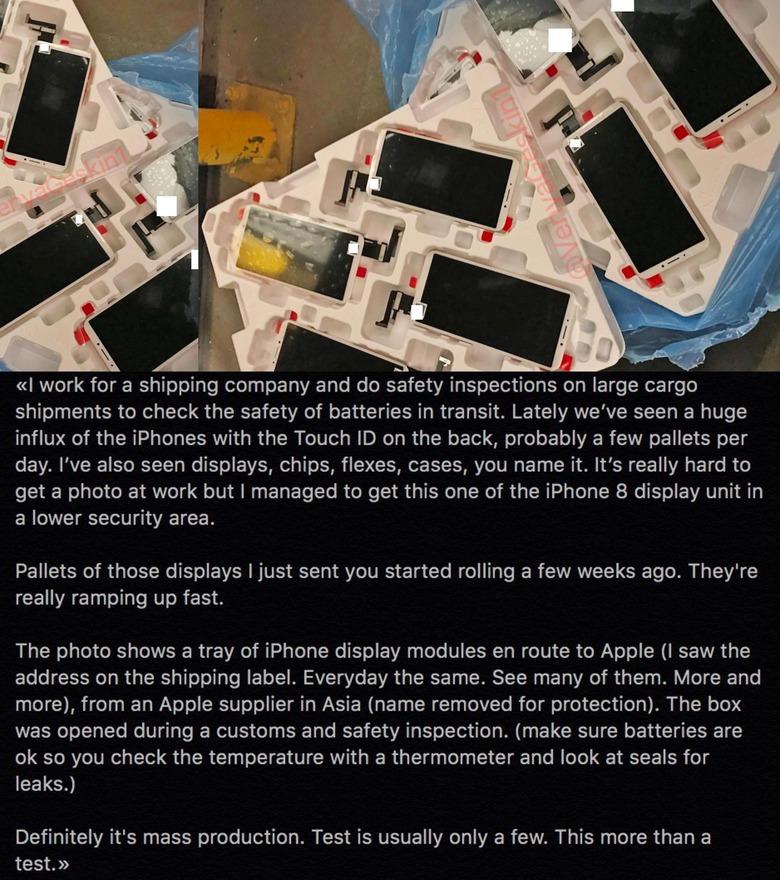 What appears to be iPhone 8 backsides have appeared in a Foxconn box on a shipping floor this week, shared all the way from China. Coming from a character who calls himself "Foxconn Little Brother", this user is essentially an anonymous contributor to the message board called Feng. This is one of a number of photos leaked over the weekend of what are said to be massive amounts of parts set to be shipped out of China to Apple outlets around the world.