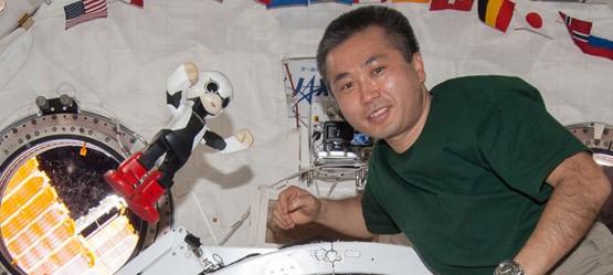 Below you'll see Kirobo next to the Kirobo Mini. The robot on the left is the one that traveled to the International Space Station – and was, incidentally, the first robot to have done so. The robot on the right is Kirobo Mini, also appearing this week at the Tokyo Motor Show.