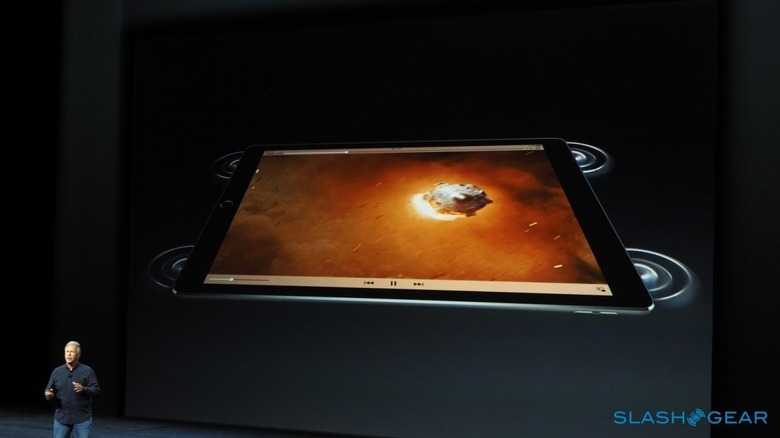 For the first time on an iOS tablet there's four speaker audio, with auto-balancing of left/right speakers and top/bottom depending on how you're holding it. Together, the quartet pushes out three-times the audio volume of an iPad Air 2.