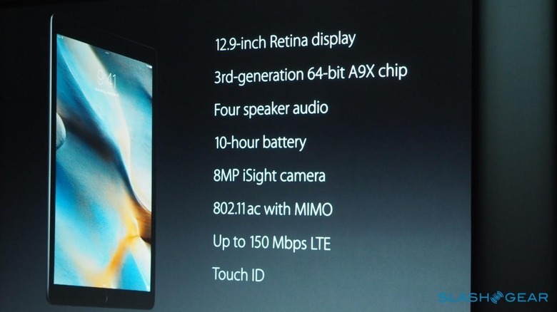 As for the multitasking features in iOS 9, those split-screen apps will get to run on the new Apple A9X, the company's 3rd-gen 64-bit chipset. That boasts twice the memory bandwidth and twice the flash writing speed than the old A8X chip, as well as being up to 1.8x faster in the CPU and up to 2x faster in the GPU.