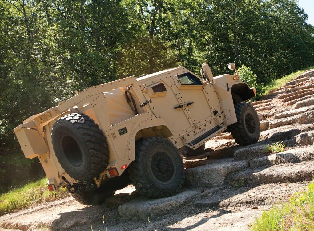 For starters, the vehicle is resistant to mines, has IED detection, and options for a top-mounted turret or missile launcher. The suspension can be lowered or raised electronically, with up to 20-inches of wheel travel when off-road in the field. Plus, it's said to be 70% faster than the market's leading tactical wheeled vehicle (TWV).
