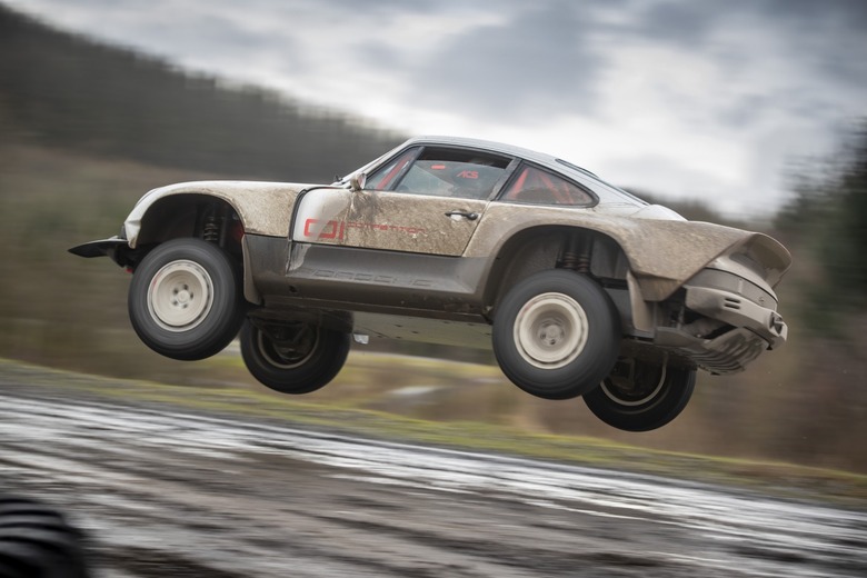 Singer started out with a 1990 Type 964 Porsche 911, then went to town upgrading it for tougher treatment. The monocoque was strengthened, to hold up to off-road duties, with carbon fiber body panels fitted. Those are designed for easier replacement should the inevitable race damage strike.