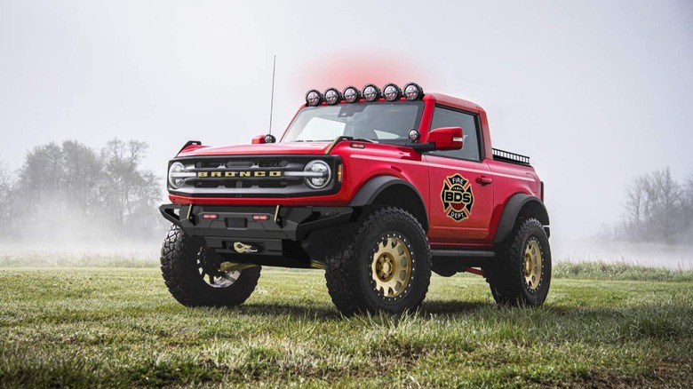 It's certainly the most outlandish of the Bronco and Bronco Sport customs that Ford is taking to SEMA this year, though we'd be amiss if we didn't point out the lovable 2021 Bronco by BDS Suspensions. The Fox Shocks subsidiary has cooked up a first responder vehicle from the two-door Bronco, based on a Black Diamond series SUV.