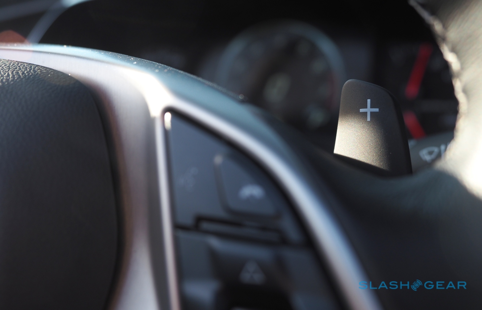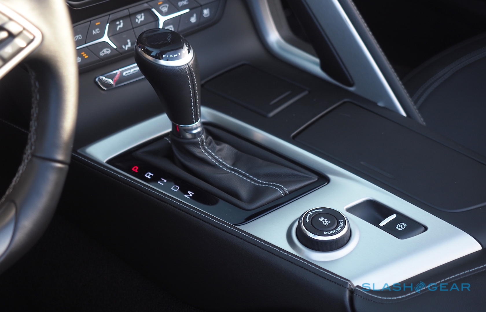 That's the steering wheel, sure, and the gear shifter. The 2019 'Vette has a pretty nice starter button, and the thick-rimmed wheel is nice (even if the two-tone hub and its switchgear are underwhelming). Chevrolet drops serious premium points on things like the paddle shifters, though, which feel like cheap plastic, and the drive mode knob, which has the tactile reward of an oven thermostat.