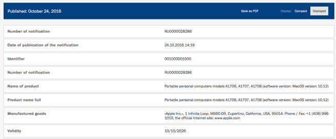 Consomac (as reported by 9to5Mac) has uncovered a Eurasian Economic Commission filing made by Apple that suggests the company will reveal three new MacBooks at this event. The listing gives almost nothing in terms of actual details. In fact, it only lists three model numbers – A1706, A1707, and A1708 – and says that these are all "portable personal computers models."