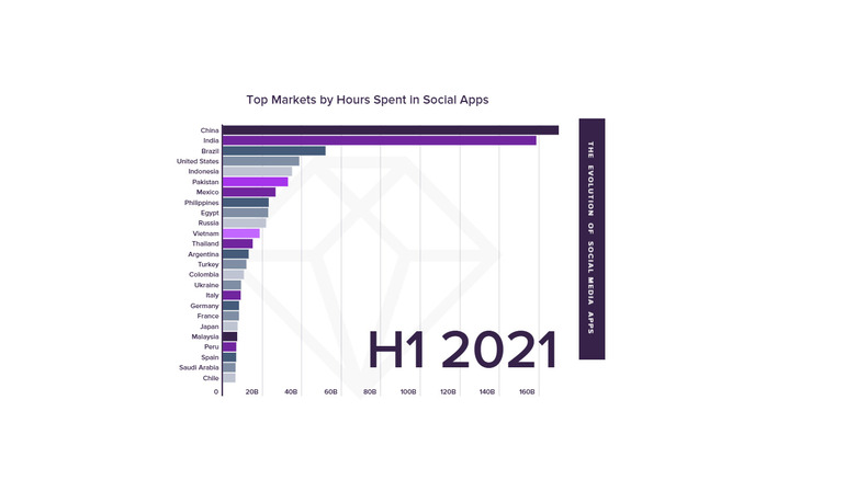 According to an Infogram showing data collected by App Annie, hours spent in social and communications apps were up significantly in the first half of the year 2020, then equally high in the second half. A small but significant drop in hours recorded on social and communications apps was shown in the first half of 2021. This might be attributable to people attempting to go outside and play after spending an entire year quarantined from friends and family.