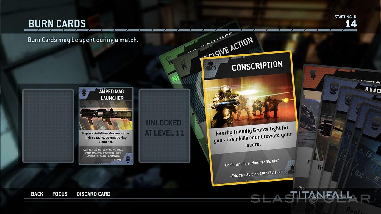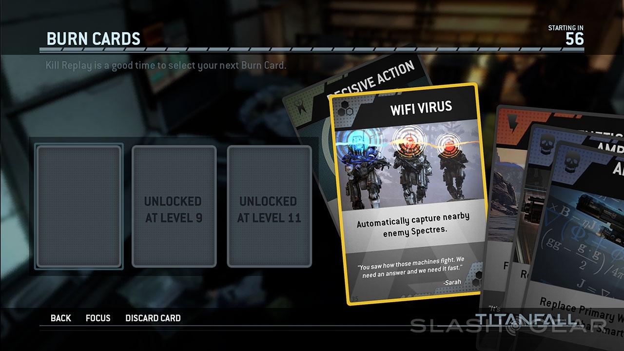 Burn Cards remind us that Respawn Entertainment are looking to make a name for themselves in the multiplayer arena. Where before you'd have been safe expecting the enemy to select from a pre-set number of classes and weapons, Titanfall adds an element of surprise in Burn Cards, usable once and forever disintegrating afterward.