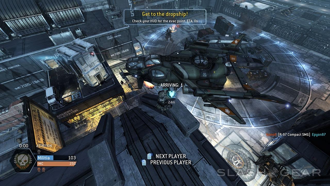 The end sequence can bring a losing team a sense of victory in escaping, while stopping an escaping, losing team can add to the sting of loss – and the joy of victory, of course. Destroying a drop ship is not easy – a single pilot will not be able to take out a drop ship on their own unless they've got some especially massive weapons – multiple Titans will do the job with relative ease.