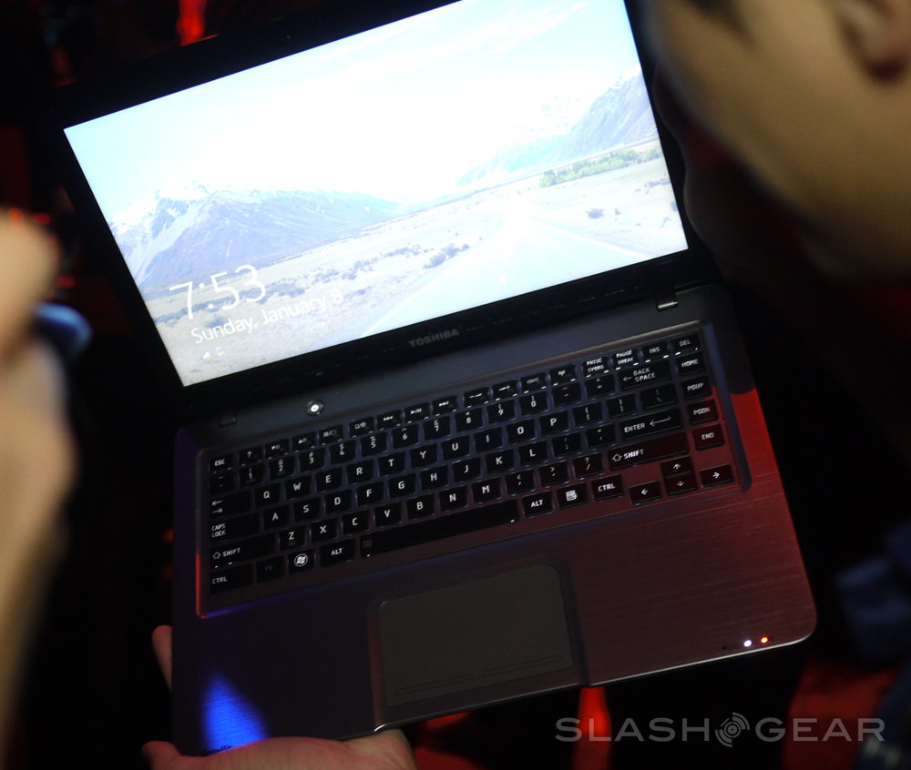 In case anyone wasn't sure about what we'd be seeing at CES this year, let me tell you — Ultrabooks! They are a hot ticket item and we'll be seeing plenty over the next week. Toshiba is already running strong with a few sleek 14" laptops but we've spotted a brand new 14" ultrabook and have plenty of pictures.