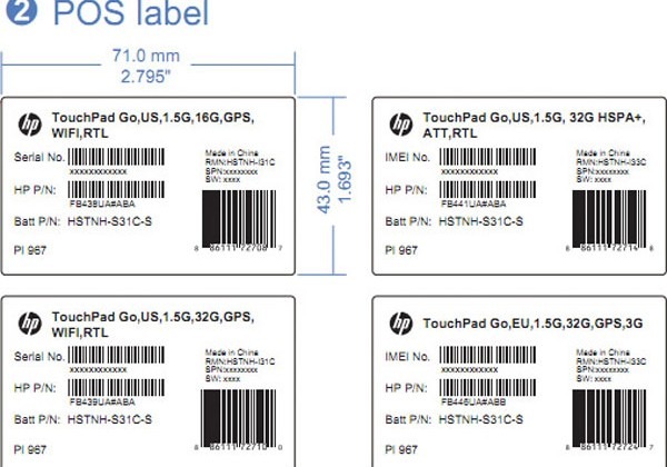 Apparently, there have been some rumors floating around that a new HP TouchPad packing 4G has hit the FCC. That isn't the case though accordion to some sources. Buried inside the FCC documents for the new HP tablet that has hit the FCC are some labels that clearly show what hit the FCC is in fact the HP TouchPad Go with a 7-inch screen we have talked about before. Last we spoke about the mysterious 7-inch HP tablet the thing was expected to launch this month.