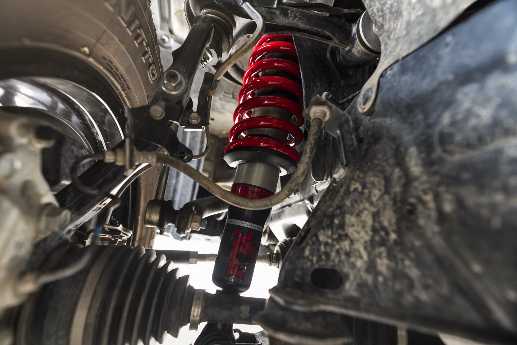 The change also allows Toyota to change its 2.5-inch Fox Internal Bypass Shocks on the 4Runner TRD Pro, which the automaker says should lead to better trail isolation and high-speed performance on the trail, while keeping on-road comfort and steering response. TRD-tuned coil springs are on the front, with an inch of lift, while piggyback-style remote reservoirs are fitted at the rear.