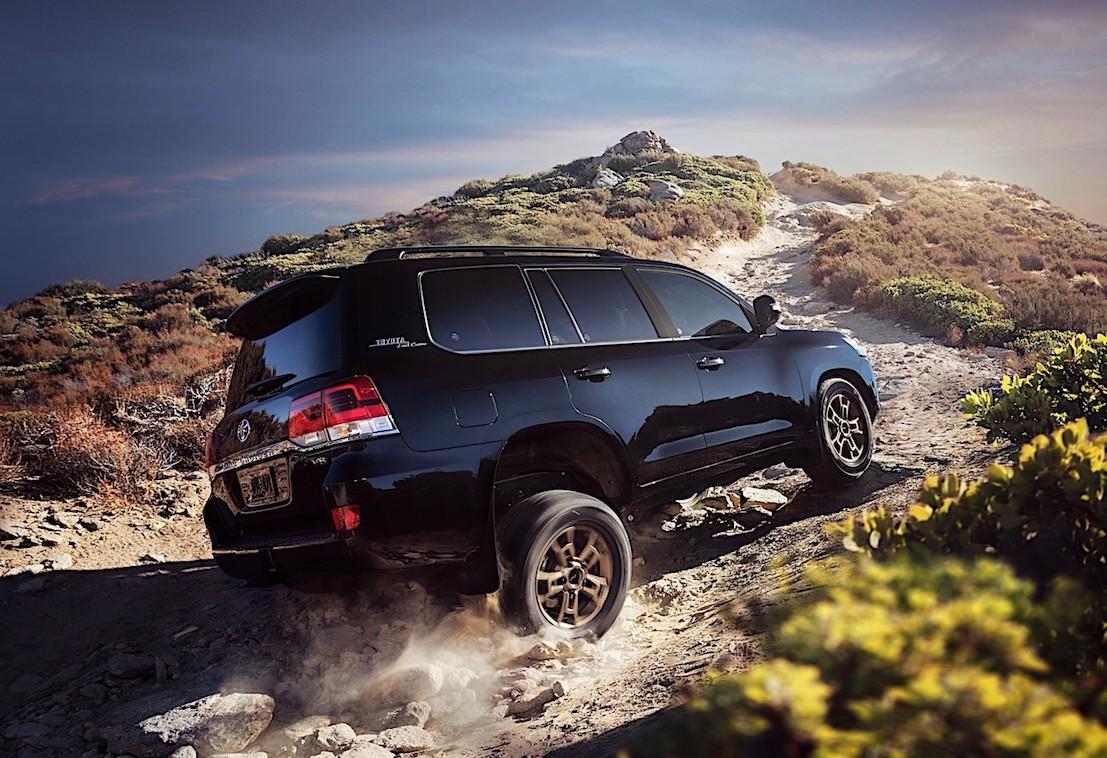 Most of the details making up the Heritage Edition are visual, including BBS forged aluminum wheels in bronze, black accented grille, a vintage-inspired "Toyota Land Cruiser" emblem by the rear windows, and a choice of either Midnight Black Metallic or Blizzard Pearl for the exterior color. The interior is filled with black leather-trimmed upholstery, and bronze accents to match the wheels, like stitching on the seats, steering wheel, and console.